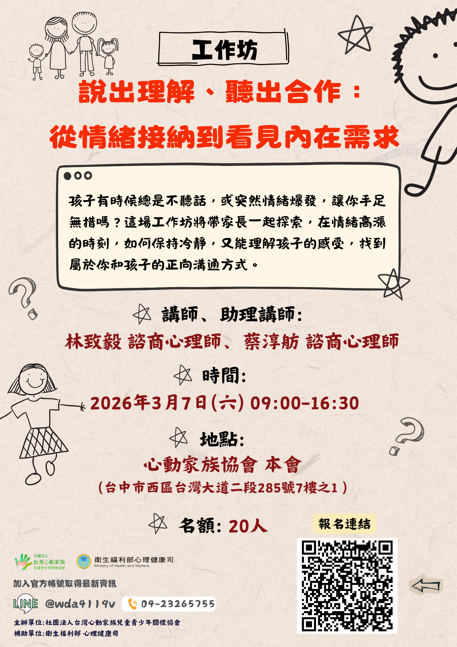 社團法人台灣心動家族兒童青少年關懷協會「115年03月 ADHD 相關主題講座及工作坊」