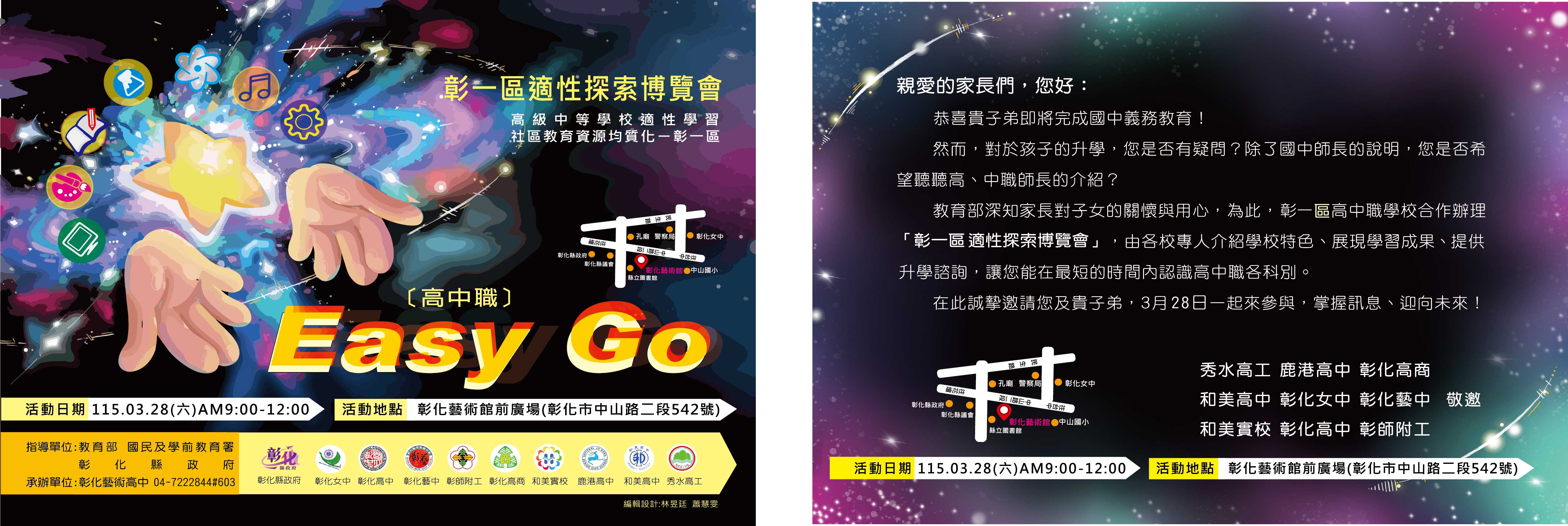 | 五、 | 擬請各校輔導室張貼「適性探索博覽會」海報,及發放邀請卡給本屆國三學生,近日會寄至貴校,請查收。 |