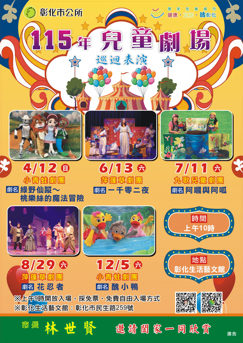 彰化市公所「115年兒童劇場巡迴表演」活動海報如照片檔所示,請大家踴躍參加。